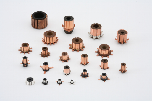 モールド整流子 中型モールド整流子 スタータモータ用 燃料ポンプモータ用 EGRバルブモータ用 ターボモータ用 ABSモータ用 アイドリングストップモータ用 小型モールド整流子 ドアミラー格納モータ用 ワイパーモータ用 パワーウィンドーモータ用 スライドドアモータ用 電動ファンモータ用 パワーシートモータ用 パワーステアリングモータ用 扁平型モールド整流子 歯科研削用マイクロモータ ミシン用マイクロモータ 各種電動工具用モータ用